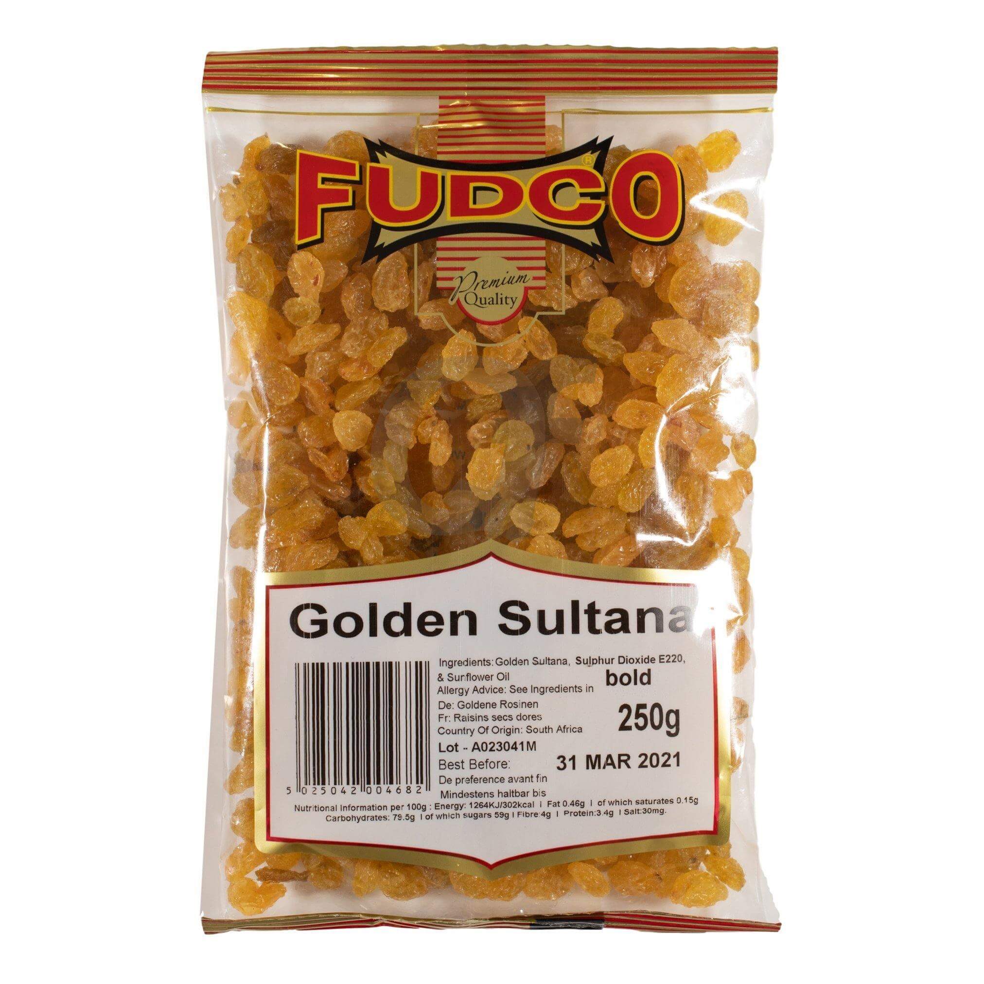 Fudco Golden Sultana. Golden Sultana are from the grape family and suitable for vegetarians. They undergo various washing processes and are eventually dry heated to provide the golden colour. Golden Sultana are used in many savoury dishes.