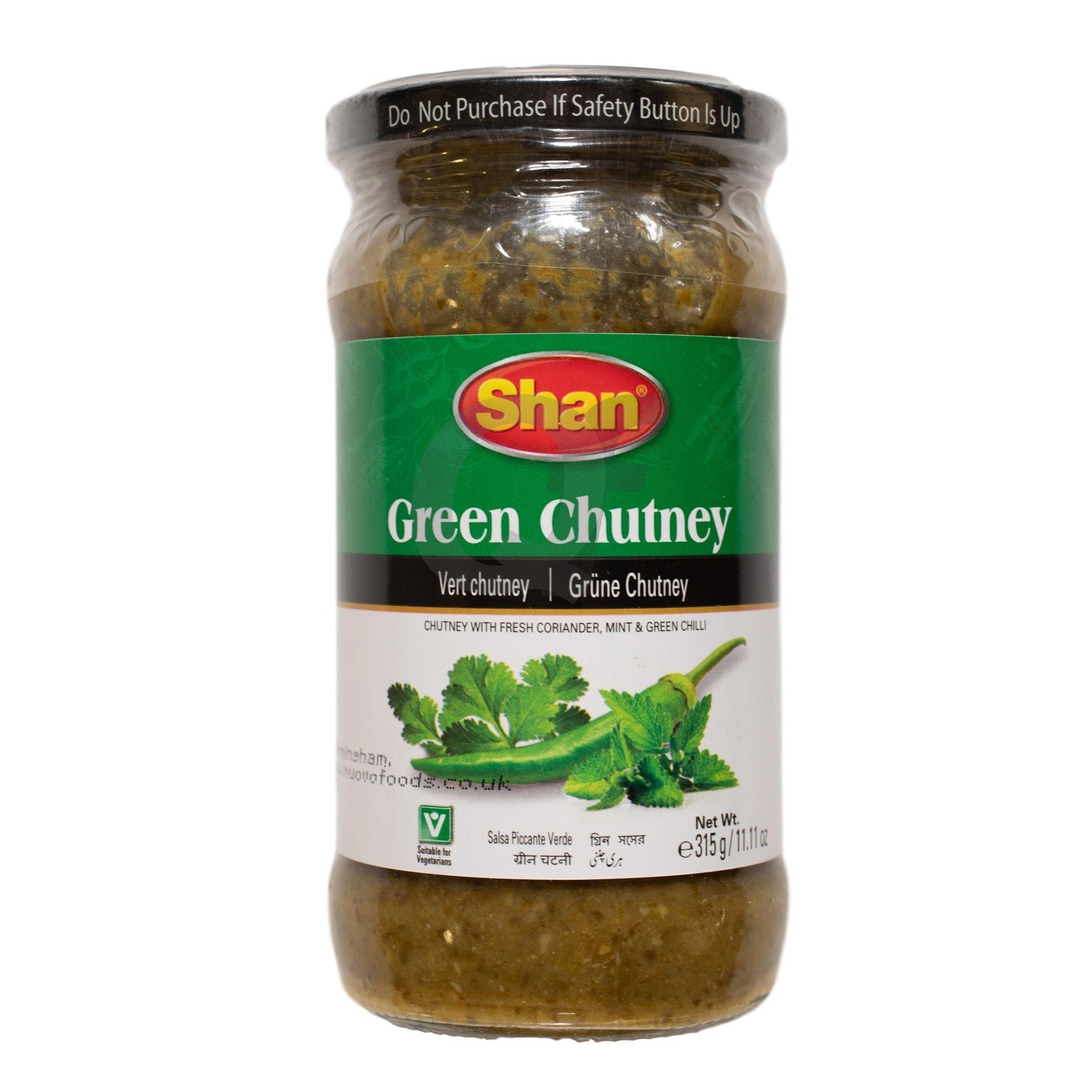 Shan Green Chutney. Green Chutney is made from the fresh coriander with a hint of ginger and garlic. It is very popular with the Indian snacks and is used as a spread to make the Indian sandwiches.