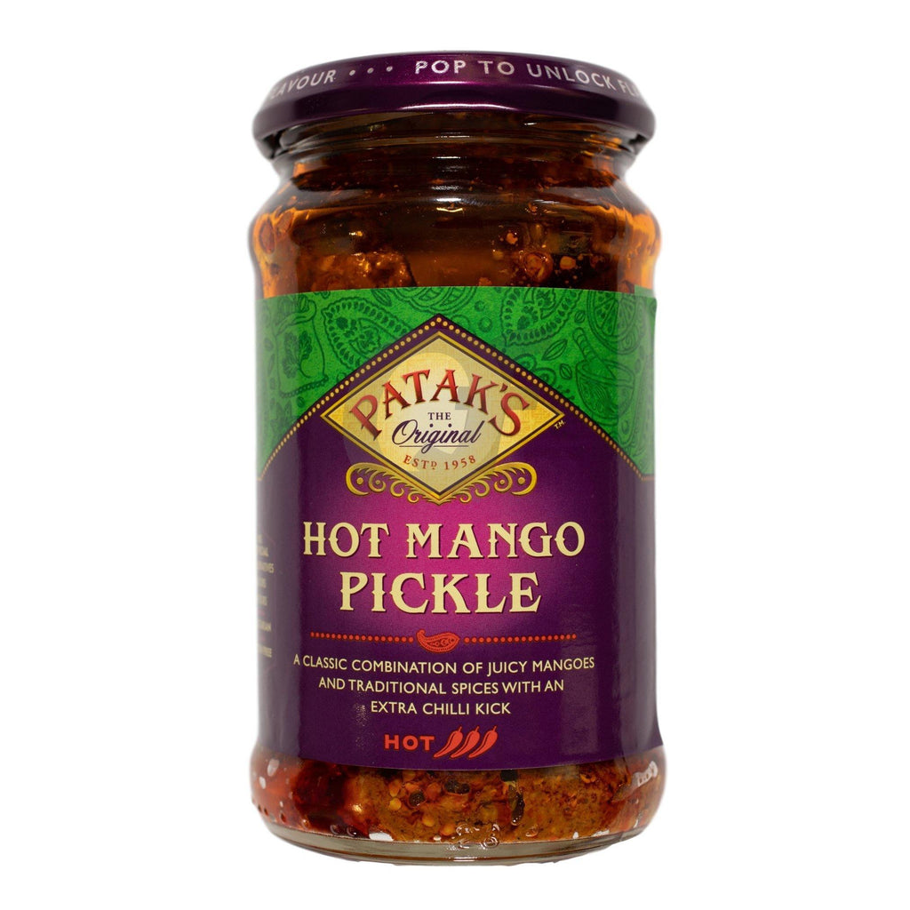 Pataks Hot Mango Pickle. Pataks Mango Pickle contains high quality of mangoes. It is made from the special traditional recipe which includes spices and oil giving the pickle an authentic taste. All the mango pickles are usually hot and mild in spice.